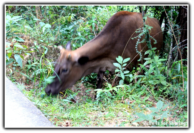 行了差不多全日,以為見唔到牛群,那知說時遲那時快就看到很多牛,大約有七八隻,還要企在路的兩旁。佢地十分悠閒,一邊食草,一邊係度擺尾,差不多擺到我。「牛大哥,唔該借借。」很辛苦先可以係佢地中間穿過。