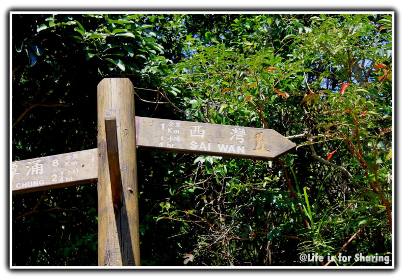 沿途都有很多指示牌,所以唔會迷路。基本上,由西灣亭到鹹田灣都是一條路的。雖然當天都有些少曬,但都有些風,所以唔算得上太辛苦。當日我都帶備足夠的水(有一公升,同朋友借的寶礦力粉),裝備包括:行山杖(我自己覺得就十分之有用,可以係上上落落時借力)、帽(這是行山用的帽,有條繩可以穿住,大風都唔會吹走。還有一塊在頸後的布,成個Keroro軍曹咁)及一條小毛巾。記得上一次來裝備不足,真係行到想死,所以今次真係有備無患。不過,有一樣失策是穿了一條黑色的運動褲,十分之吸熱。另外,我都準備了一些麵包而備不時之需。不過,最要緊的都是行山前食早餐。天氣嚴熱,如果空肚去就很容易中暑。當日就有朋友不聽勸告,之前沒有食早餐及帶備充足的裝備食水,差點在山上暈倒。